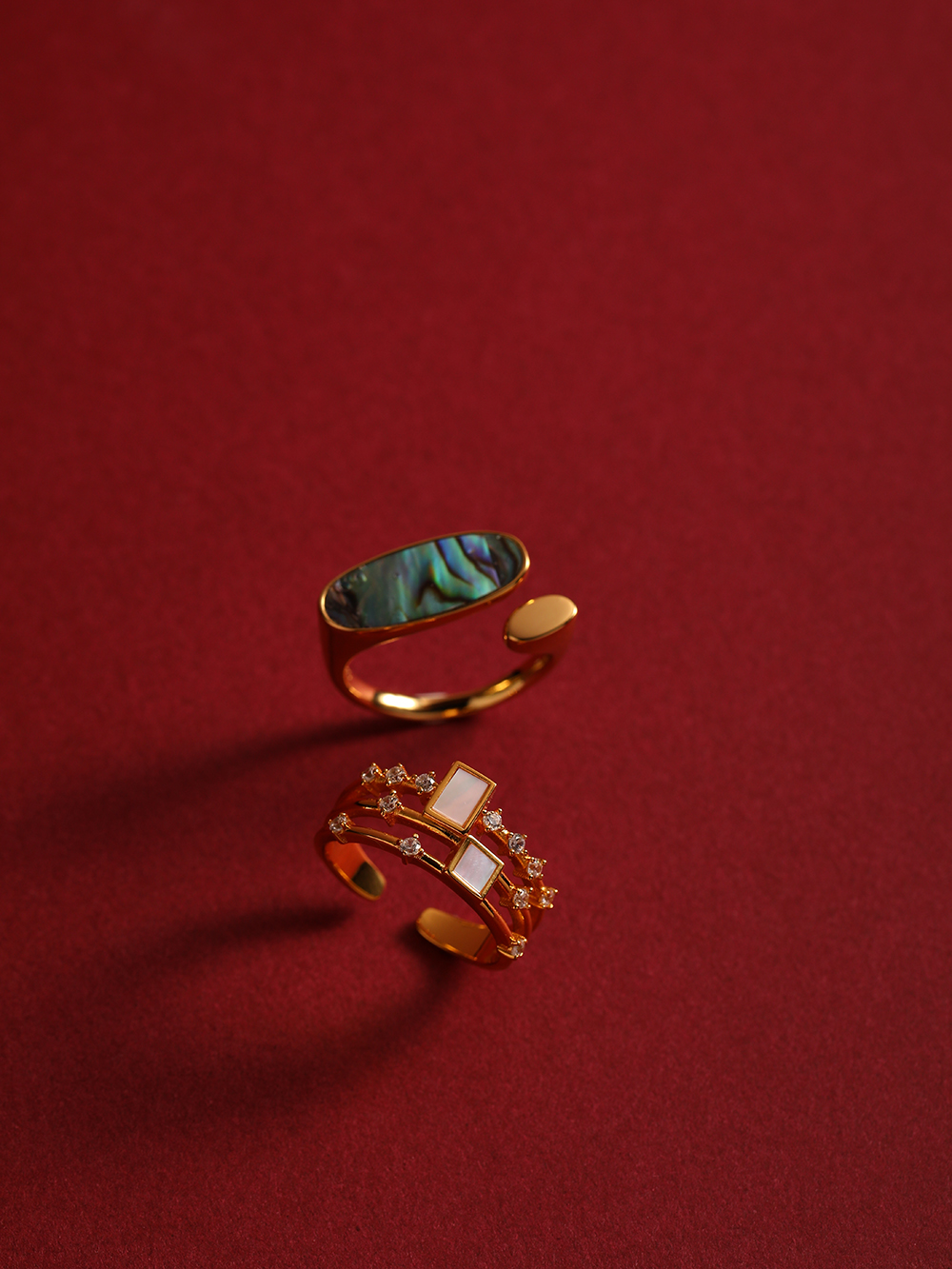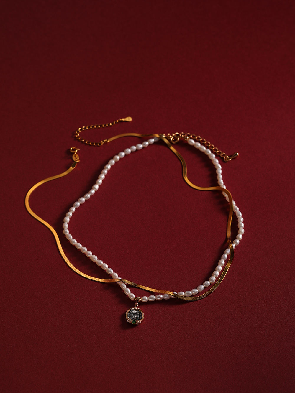 Recyclable gold and silver, original natural pearls, artificial gemstones